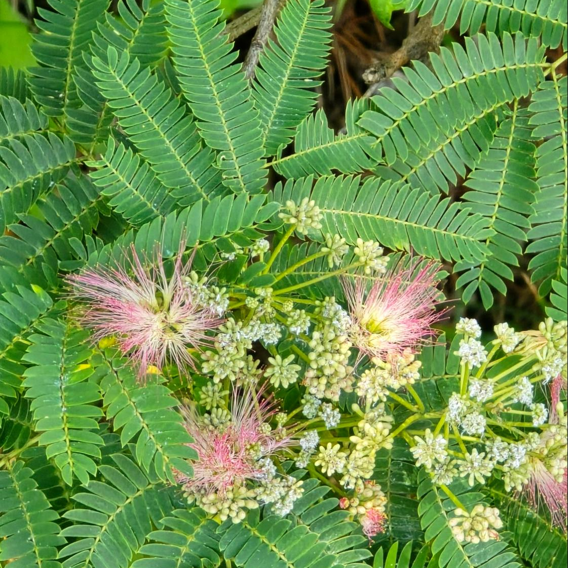 자귀나무의 꽃은 독특한 구조로 구성되어 있습니다.